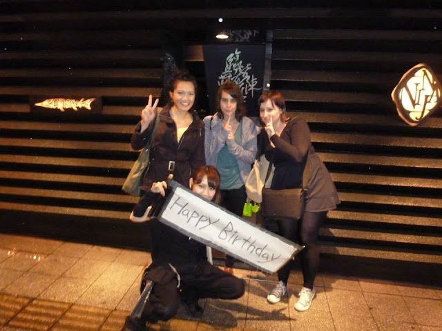 I also lied today. I told them it was my birthday when it wasn't because I wanted special treatment. For the dessert, they designed mine with a chocolate reading "Happy Birthday Alice" as well as a candle stuck into a strawberry. The ninja crew brought it in and sung happy birthday for me and took a group photo for us, which they also gave us the photo before we left as a gift. I was so happy. I felt bad for lying, but I was thinking that since I won't be here in Japan during my birthday, I'm simply just celebrating early. Or is that a poor excuse for a lie?